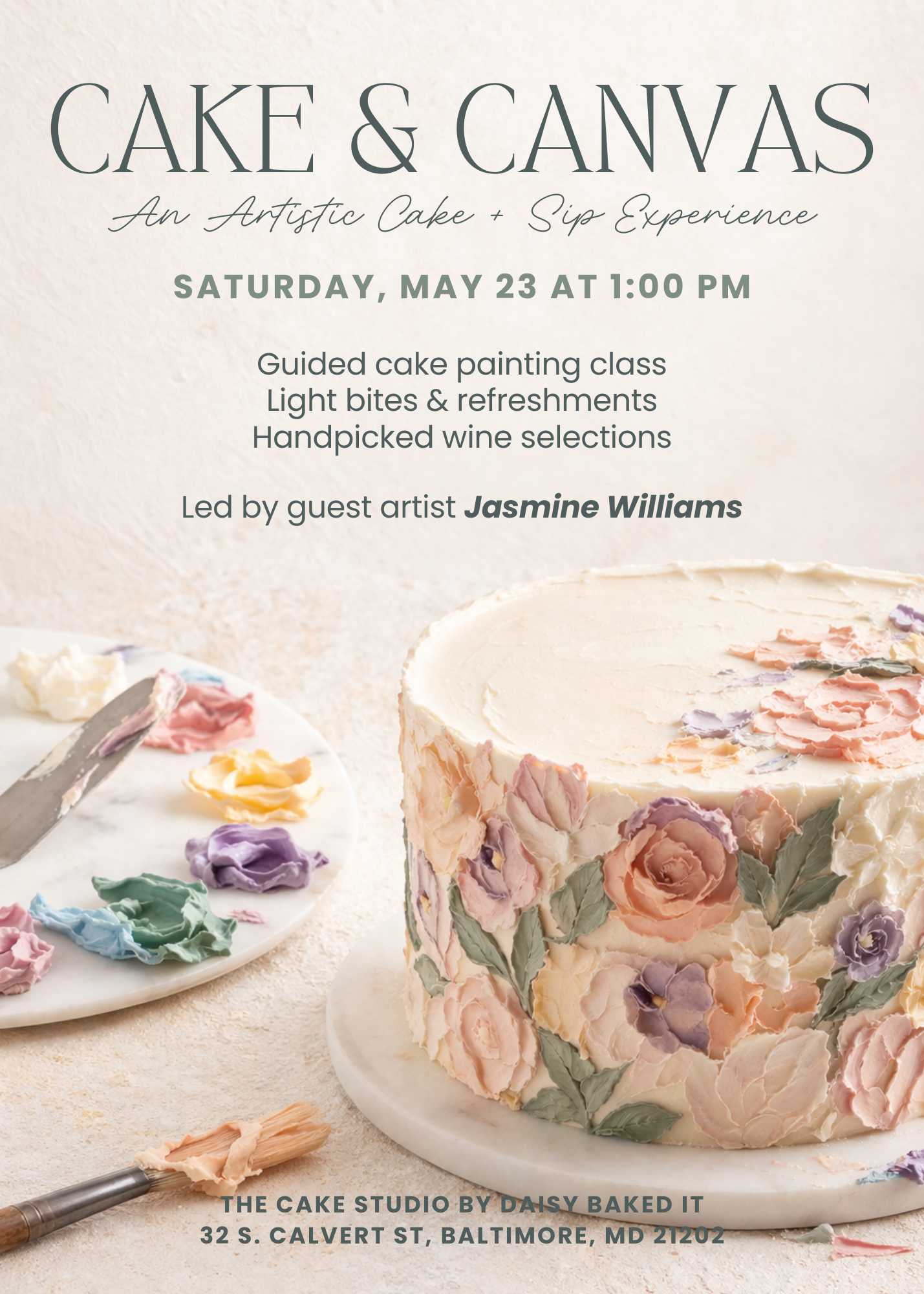 A guided buttercream cake painting experience with wine, light bites, and creative vibes led by a guest artist.
